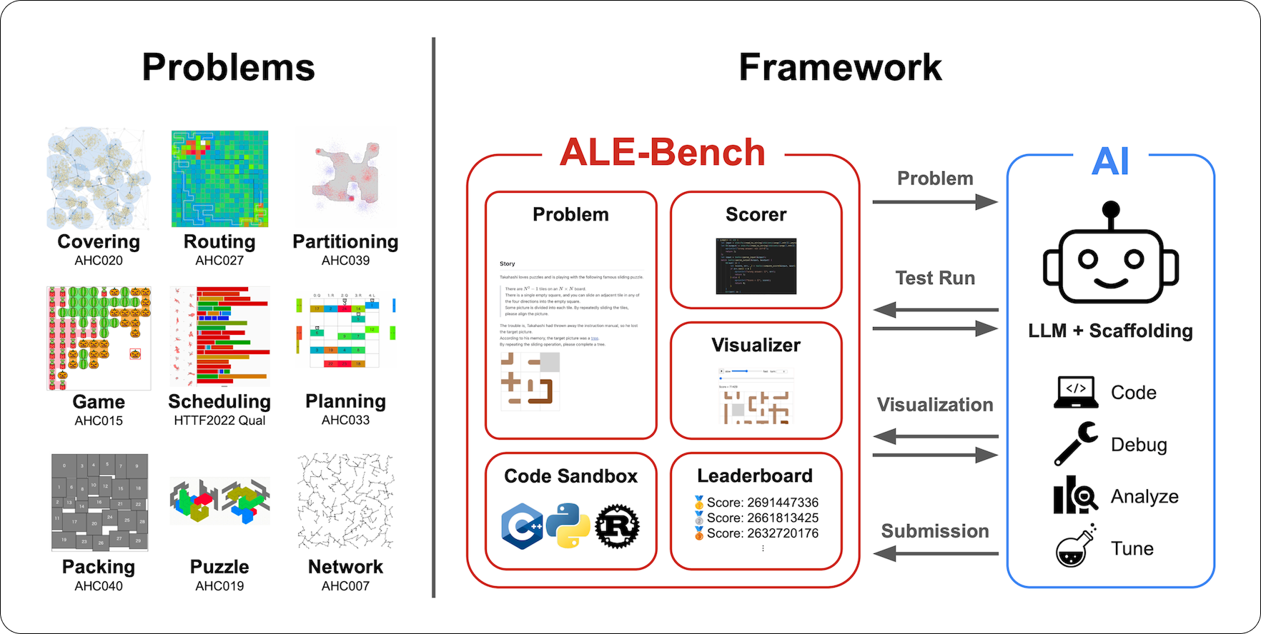 We introduce ALE-Bench, a coding benchmark inspired by hard optimization problems whose true optima are computationally out of reach (e.g., NP-hard). This benchmark enabled the development of our new coding agent, ALE-Agent, designed to tackle hard optimization problems. In May 2025, ALE-Agent achieved 21st out of 1,000 human participants in a live AtCoder Heuristic Competition (AHC), marking a turning point for AI discovery of solutions to hard optimization problems with important real world applications.