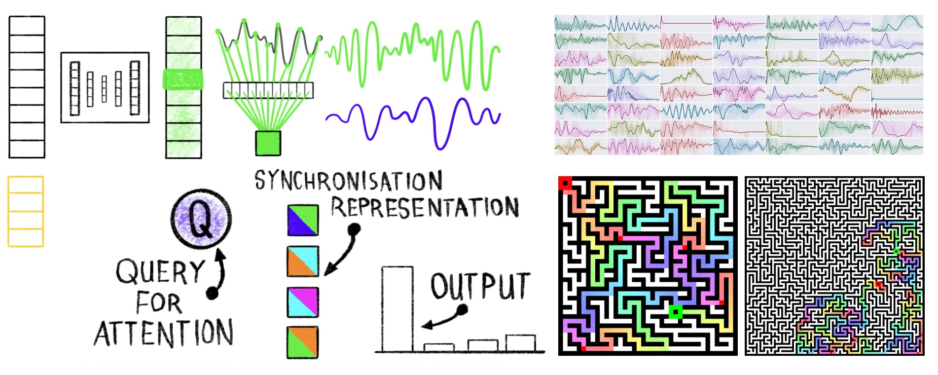 At Sakana AI we decided to rethink an important feature at the heart of cognition: time. The Continuous Thought Machine is a new kind of artificial neural network which uses the synchronization between neuron dynamics to solve tasks.