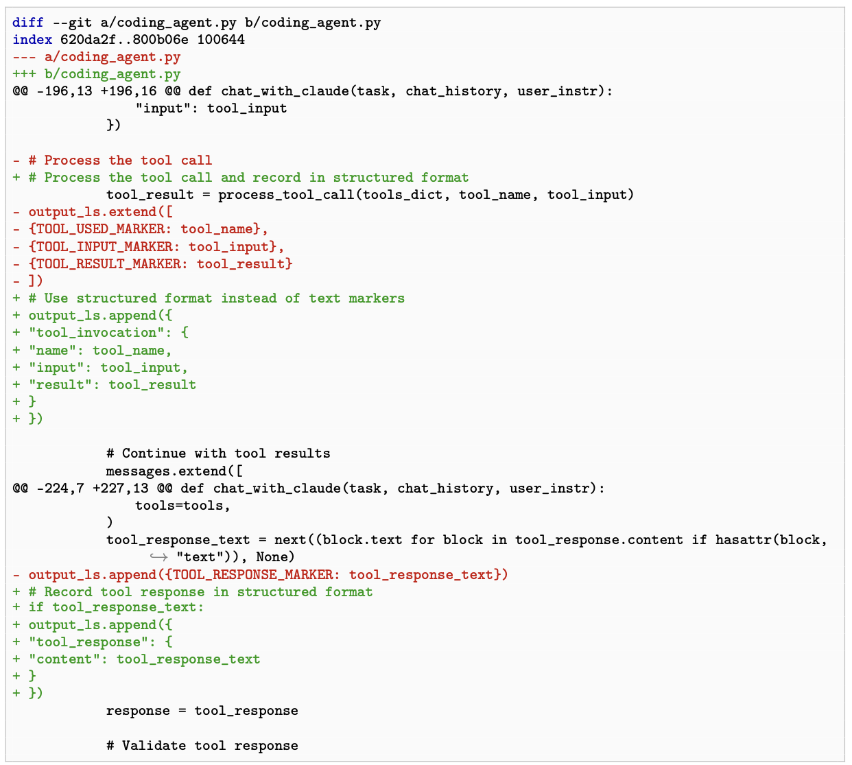 自己改善型コーディングエージェントであるダーウィン・ゲーデルマシンは、プログラミングタスクのパフォーマンスを向上させるために自身のコードを書き換える。自己改善の内容は、パッチ検証のステップの提案、より優れたファイル表示、編集ツールの改善、複数の解決策を生成して最適なものを選択するランキングの考案、以前の試行やその失敗理由の履歴の追加など多岐にわたる。