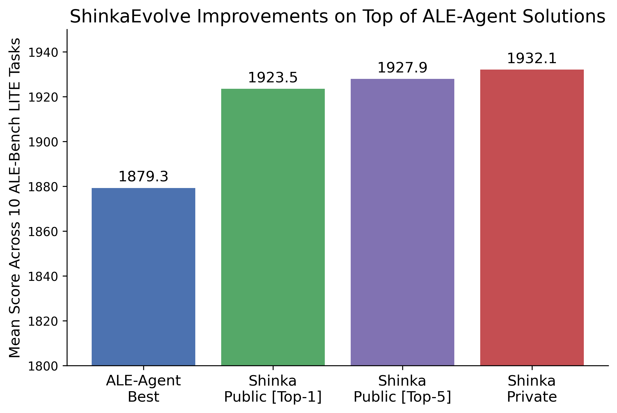 Competitive Programming: ShinkaEvolve improves ALE-Agent initial solutions for AtCoder heuristic programming competitions.
