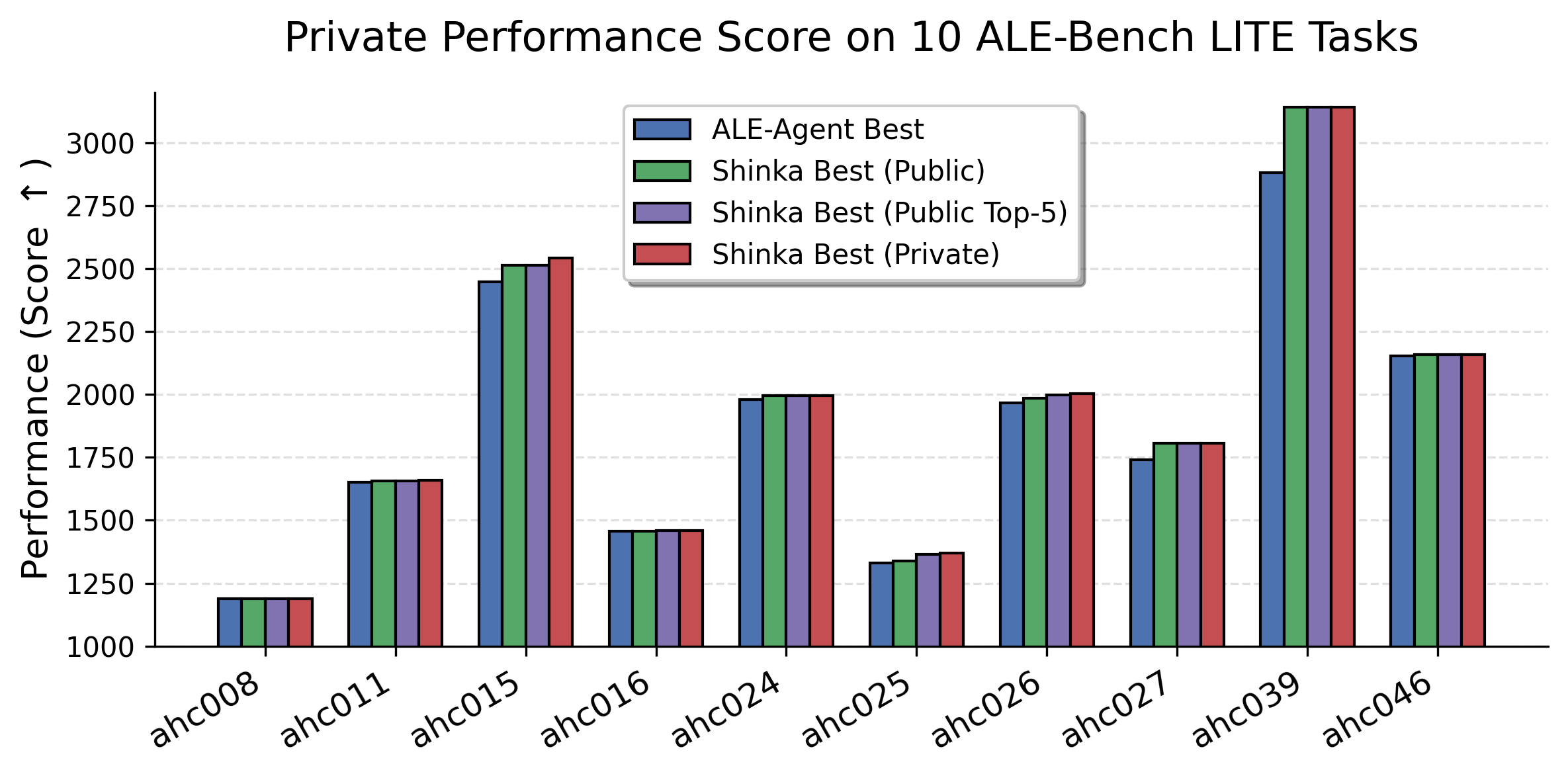 We took the best solutions discovered by a state-of-the-art agent (ALE-Agent) in the AtCoder heuristic contest, a competitive programming contest for NP-Hard optimization problems, where ShinkaEvolve is used to improve them further. It successfully found improvements across multiple tasks, boosting the average performance of the agent. On one task, its improvements were so significant that it would have achieved 2nd place if it had participated in the competition. It introduced clever enhancements to the ALE-Agent solution, like advanced caching and novel “targeted edge move” operators.